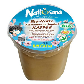 als Test von Soyana: Mit einer Tagesportion von 40 g BioNatto Natur und BioSoya-Joghurt mit koffeinfreiem BioKaffee, gesüsst mit BioKokoszucker, haben wir eine ausgezeichnete Lösung gefunden für jene, die etwas Mühe haben, ihre Tagesportion Natto mit den bisher bestehenden 3 Nattosana-Lebensmitteln zu konsumieren.